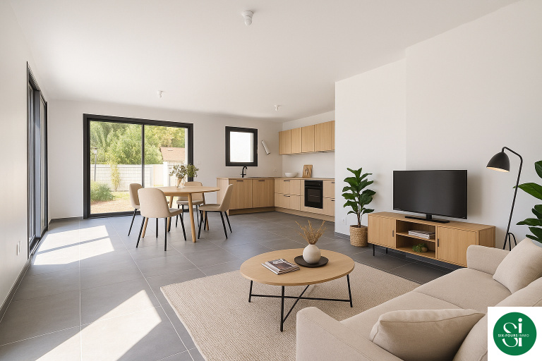 Ce bien entièrement climatisé offre un cadre de vie confortable et moderne et se compose d'une entrée, d'un espace de vie comprenant salon, séjour et cuisine à aménager donnant sur un jardin privatif d'environ 54m², deux chambres, une salle d'eau et un WC indépendant.