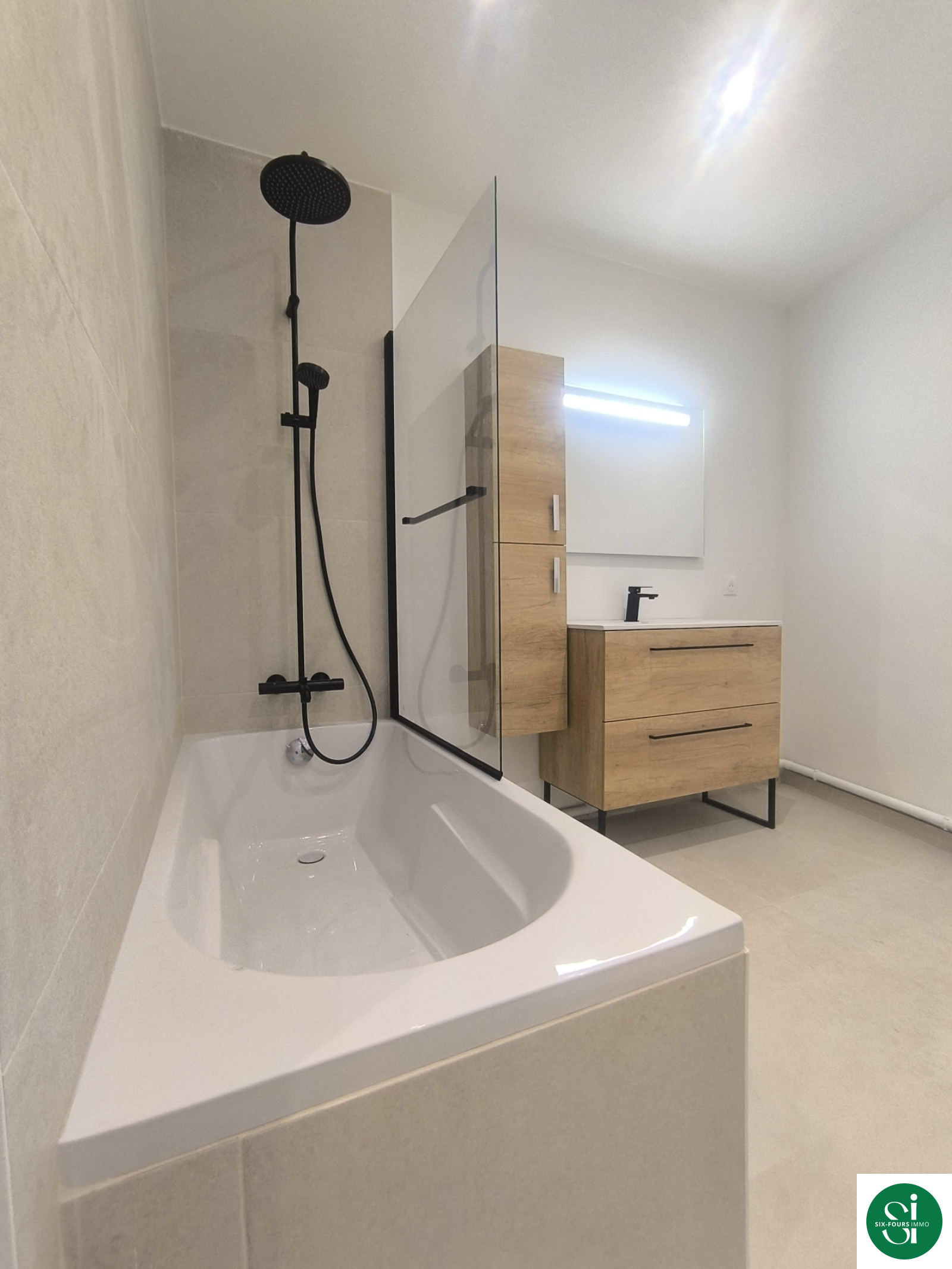 L'agence SIX FOURS IMMO vous propose en exclusité ce magnifique appartement traversant de type 4 d'environ 95m² avec terrasse entièrement rénové avec goût et matériaux de qualité.