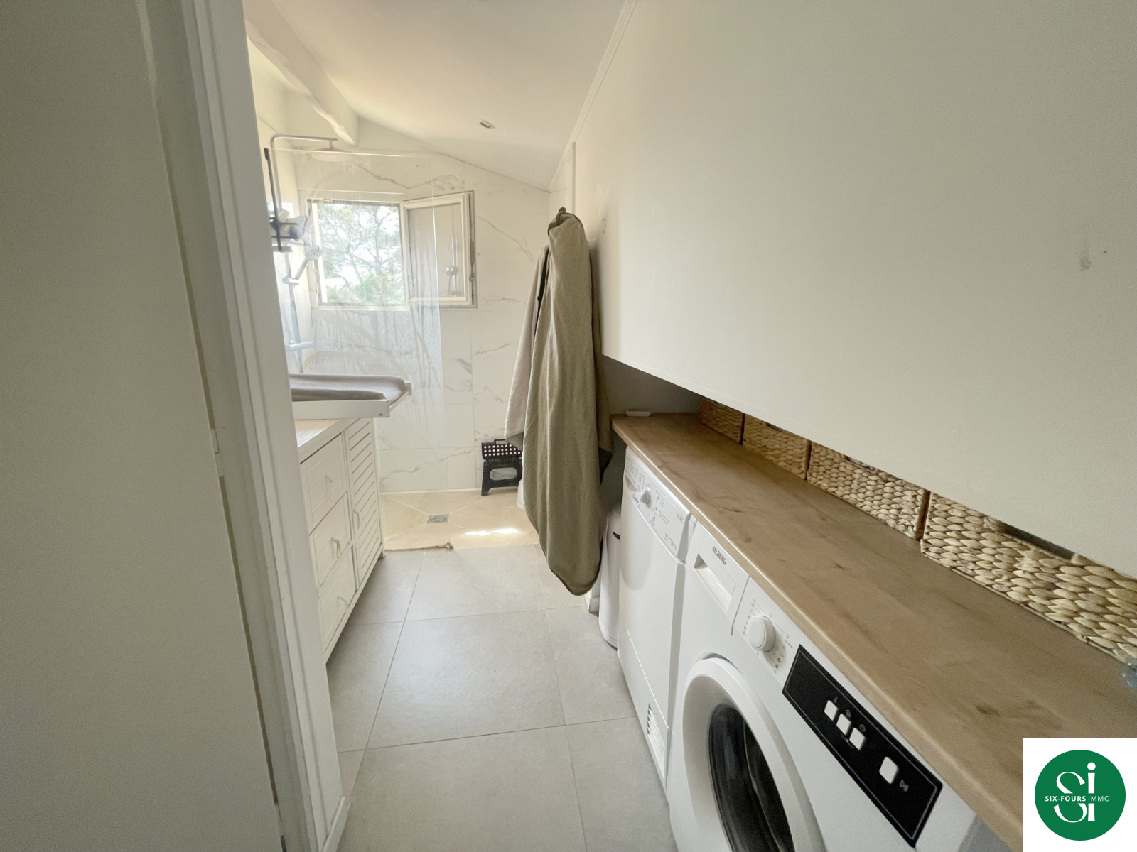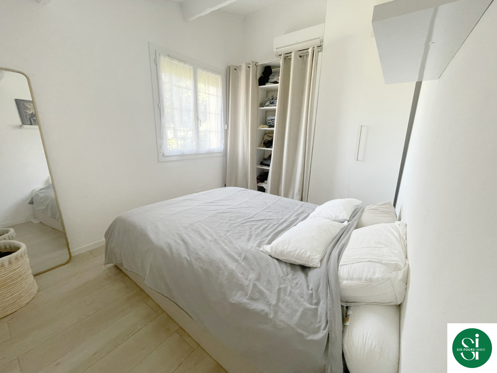 Deux chambres climatisées avec multiples rangements , une salle d'eau à l'italienne , et un wc séparé .