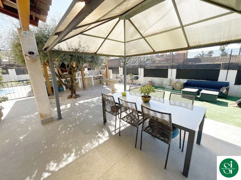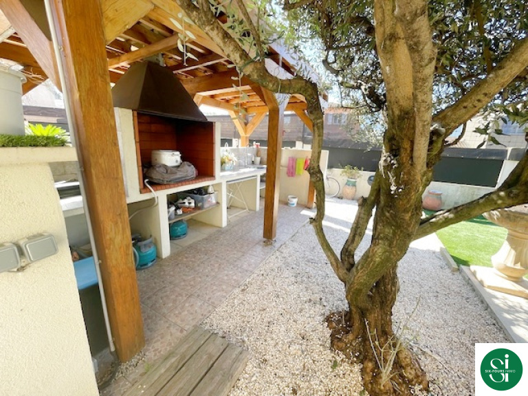 A l'exterieur sur un terrain de 506m2 , vous profiterez sereinement d'une belle piscine , de sa cuisine d'été entièrement aménagée et d'une belle terrasse exposée sud-est .