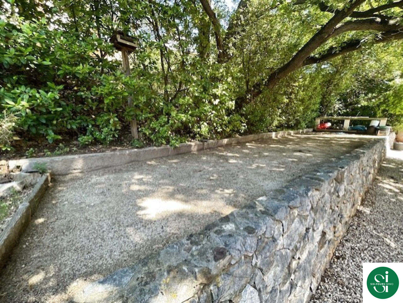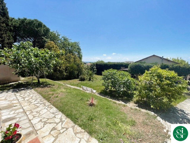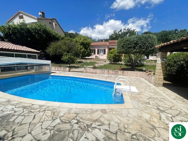 Villa de 120 m2 de plain-pied édifiée sur une parcelle de terrain de 1800 m2 avec piscine , pool house , un terrain de pétanque et un garage .