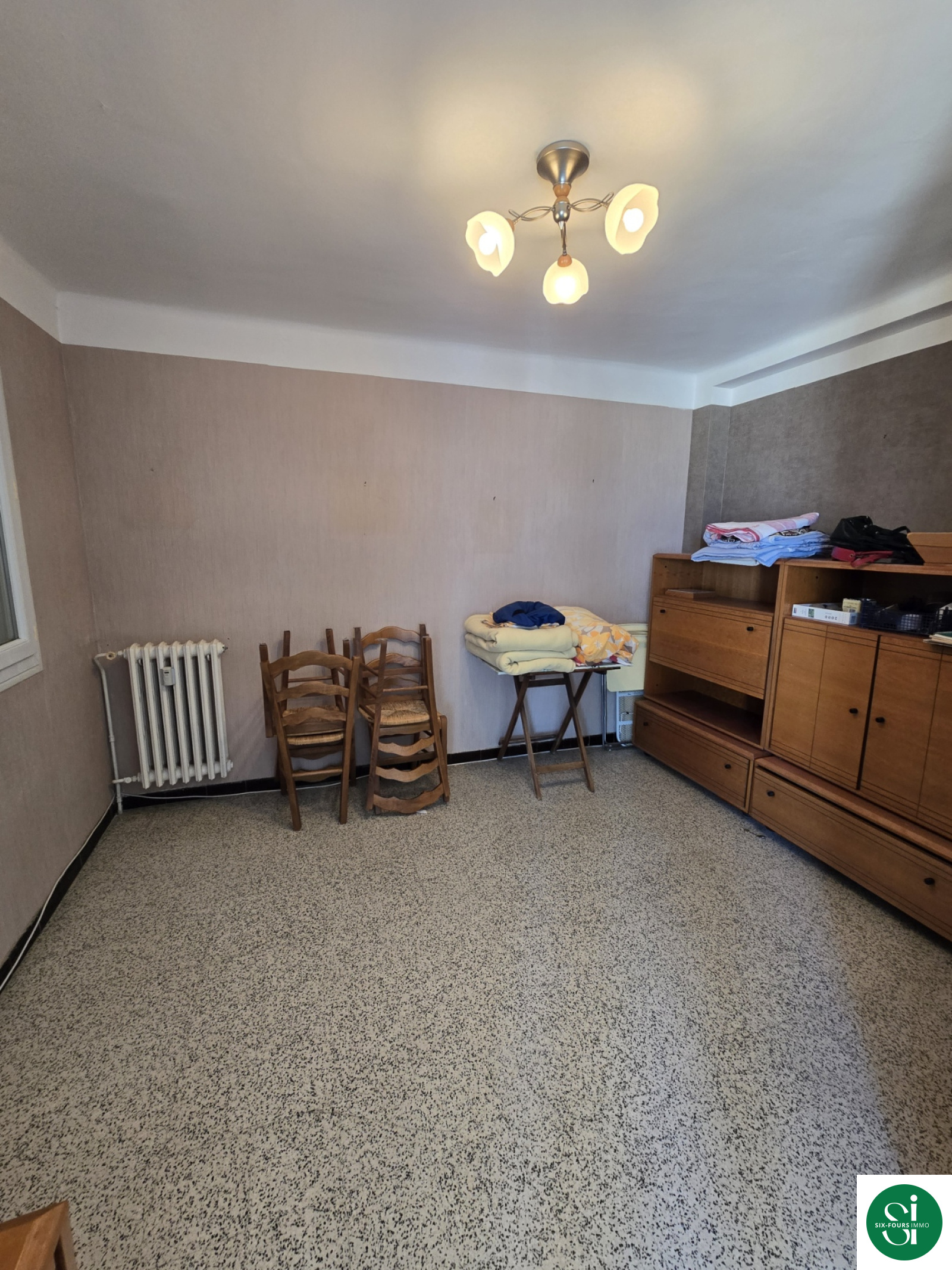 Celui ci est composé d'une entrée, d'un séjour double donnant sur un balcon, de deux chambres avec rangements, une cuisine séparée donnant sur une loggia, une salle de bain, des W.C. séparés ainsi qu'une cave.