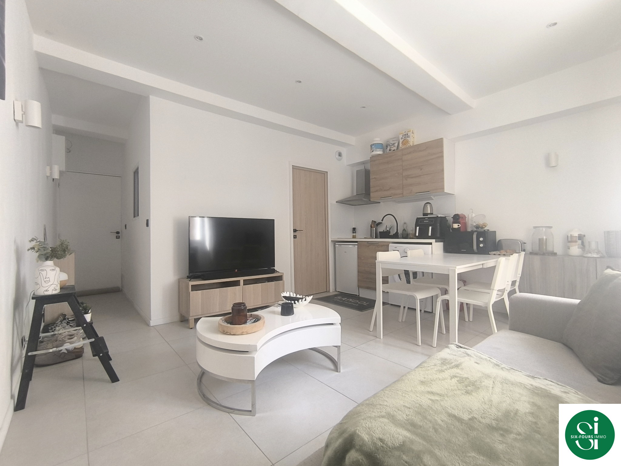 L'agence SIX FOURS IMMO vous propose de découvrir ce charmant 2 pièces rénové et climatisé au 1er étage - sans ascenseur- d'une petite résidence intimiste et bien entretenue, donnant sur une rue piétonne.